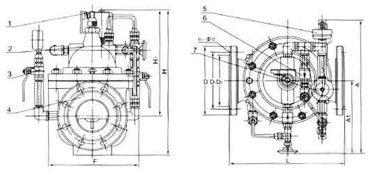 700X多功能水泵控制阀由主阀、电磁导阀、针阀、球阀、单向阀、行程开关、微形过滤器和压力表组成水力控制接管系统。水泵需停止工作时,先由进口压使主阀关闭90%后,水泵停止运转。剩余10%由回水关闭。可防止水锤现象发生。本产品利用电磁导阀控制,不需要其它装置和能源。节约能源,保养简便,停泵平稳。电磁阀可采用交流电220V或直流电24V。
