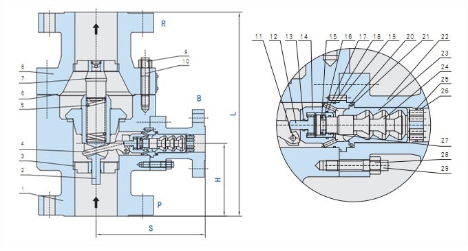 止回:自动再循环阀还具有止回阀的作用,防止液体回流到泵体中。标准型旁路带止回功能。