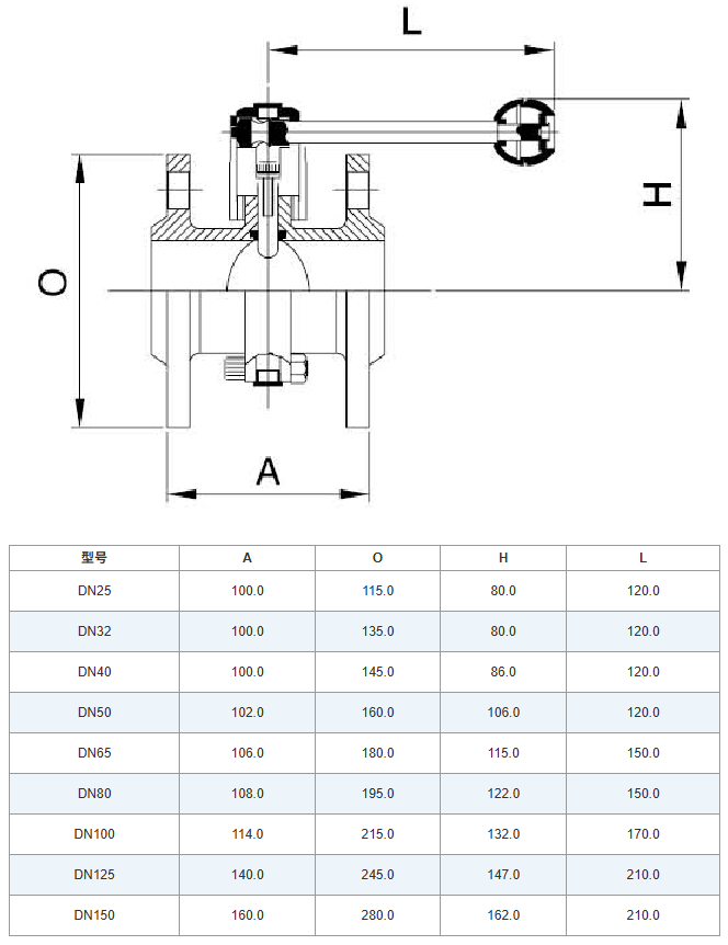 尺寸DN25/1"到DN250/10"多定位手柄尺寸到DN100/4"拉杆手柄尺寸到DN250/10*