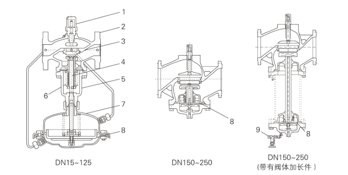 不锈钢波纹管( DN15-125)、平衡膜片( DN150-250) |
